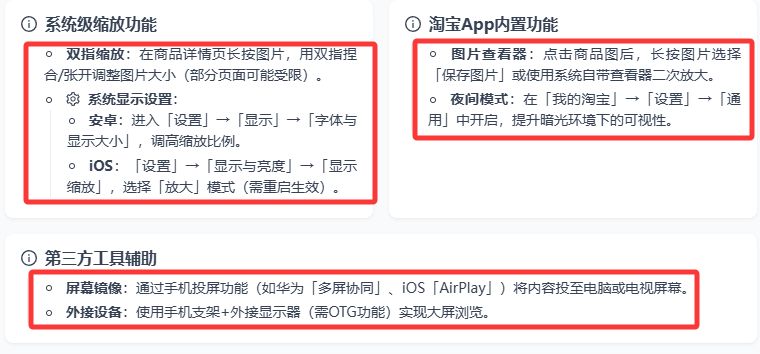 用户希望在手机端和电脑端更清晰地查看淘宝商品大图,解决小屏设备上图片显示过小的问题。潜在需求可能包括:
