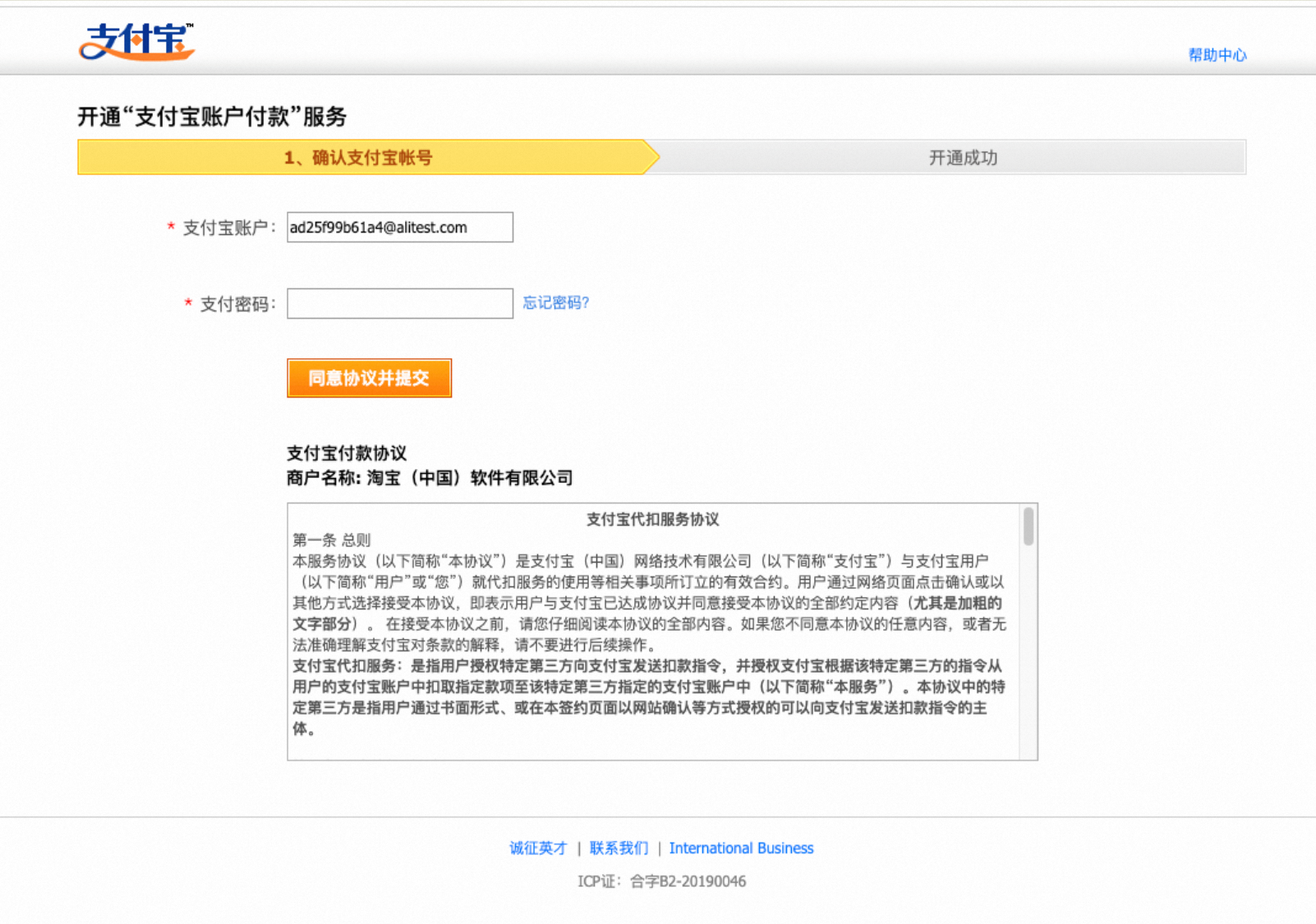 2.2.2完成支付宝协议签署后,勾选协议,完成签署