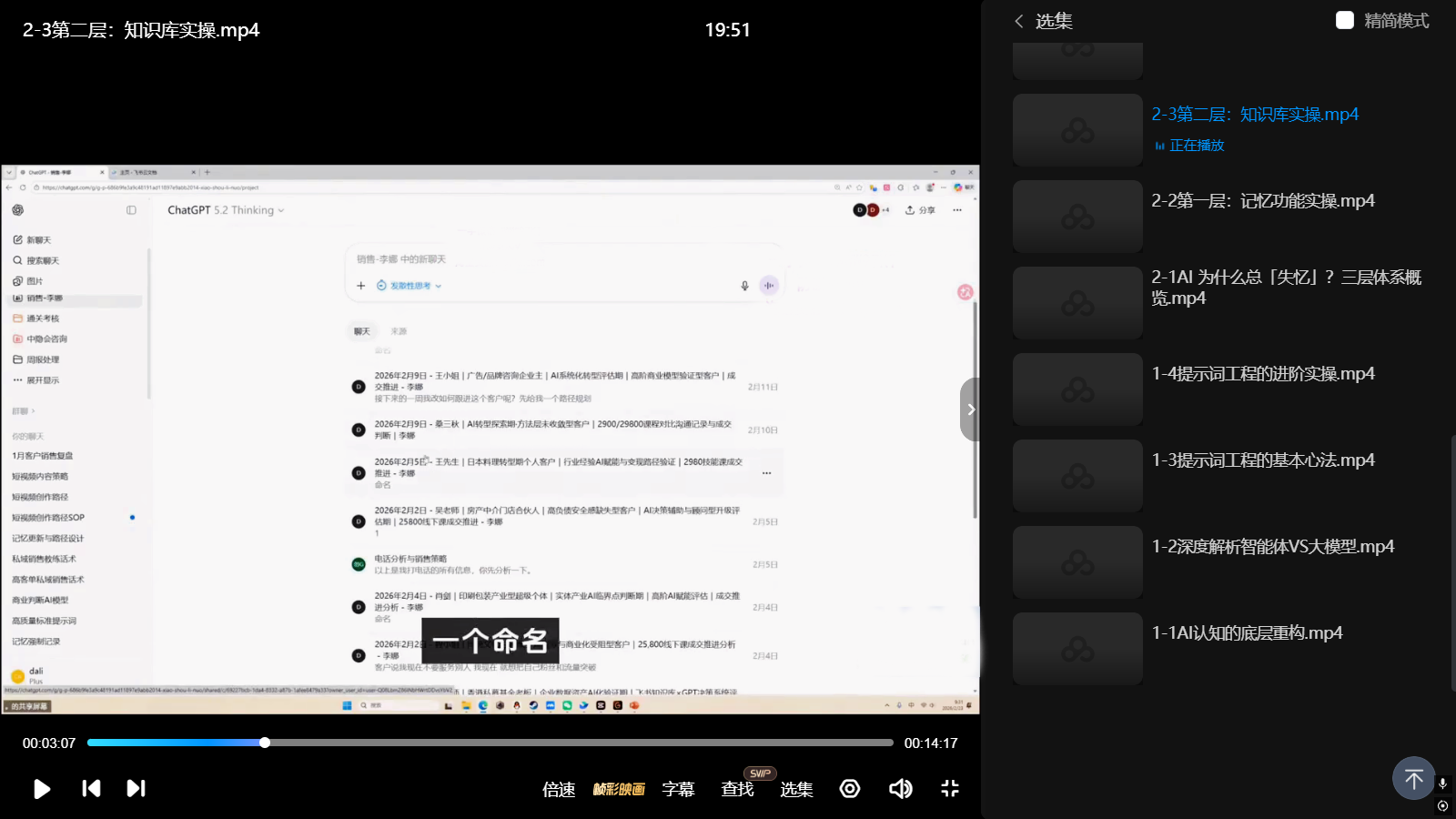 课程内容: 1-1Al认知的底层重构.mp4 1-2深度解析智能体VS大模型.mp4 1-3提示词工程的基本心法.mp4 1-4提示词工程的进阶实操.mp4 2-1AI为什么总「失忆」?三层体系概览.mp4 2-2第一层:记忆功能实操.mp4 2-3第二层:知识库实操.mp4 2-4第三层:连接器实操.mp4 2-5飞书知识库一键导出+Google Drive打通.mp4 3-1认知基础:数据是AI时代.mp4 3-2零成本语料全量采集.mp4 3-3AI辅助写信沟通法.mp4 3-4语料[一鱼多吃」.mp4 4-1智能体”技术实现到商业闭环.mp4 4-2智能体搭建实操.mp4 4-3coze平台介绍.mp4 4-4coze工作流案例演示.mp4 4-5coze工作流搭建实操.mp4 4-6cozeskills介绍.mp4