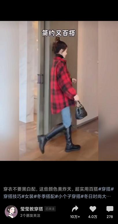 以视频号莹莹教穿搭为例,该视频号其中一条视频“穿衣不要黑白配 撞色搭配美炸天,超实用百搭”中教大家冬日搭配穿衣技巧,视频点赞4万,转发量10万+。