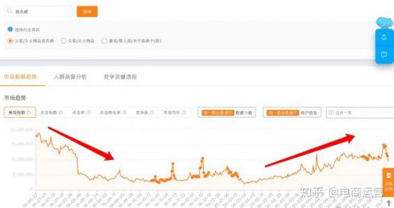 首先女装讲究季节,所以季节节点很重要,什么时候该切入什么类目就尤为重要。生意参谋标准版,打开市场-选择市场大盘,选择一级类目:女士精品,如下图