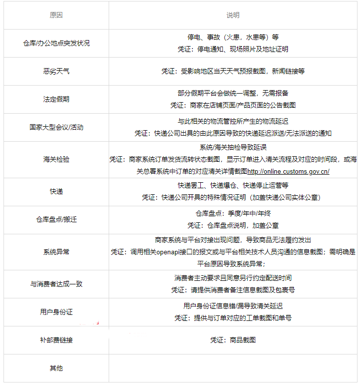 凭证需包含:正确的公司信息、公章、明示影响周期、店铺页或商详页对发货时间调整的告知。