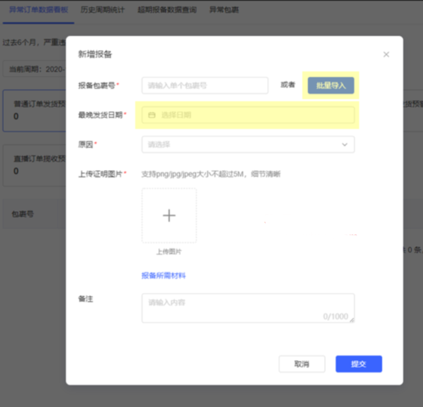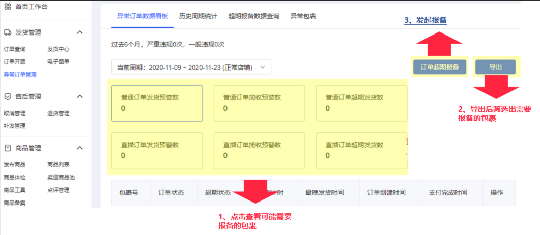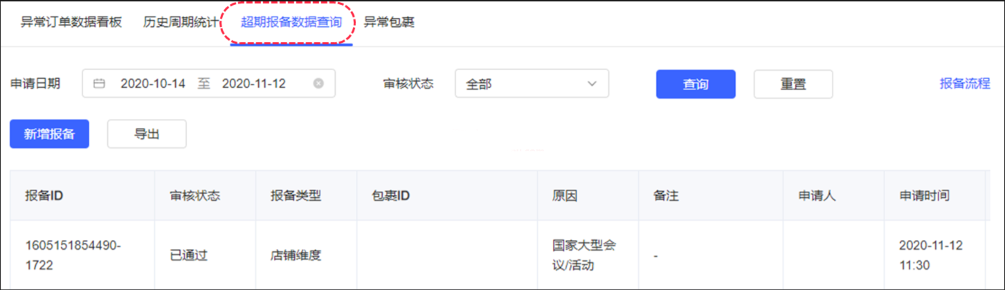 1)进入Ark发货管理→异常订单管理→订单超期报备