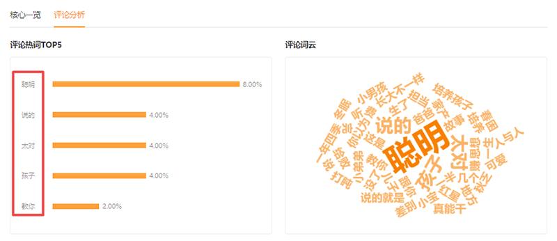 在该条视频「评论分析」中,“聪明”一词占评论热词Top5。