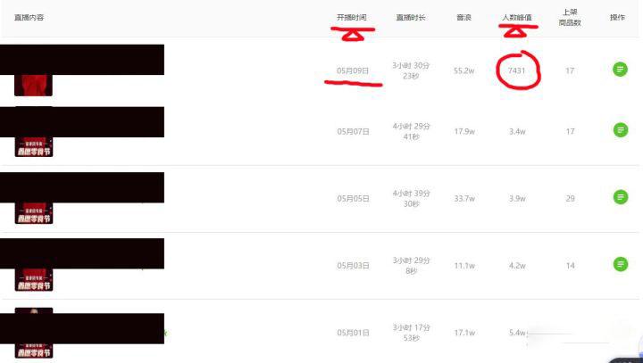 小XX老师,5.9号之前直播间人气峰值都在3W左右,5.9号当晚直播间峰值人数7431人
