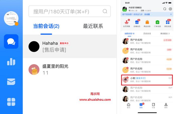 1、对于重复来访的消费者,在“当前会话”列表中,其名称后面会展示【重复来访】的标签;