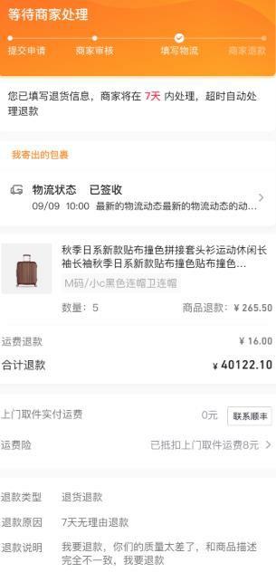 b.无运费险的退货单:快递员与消费者线下收取实际发生的全部运费;消费者支付运费后,页面上会展示上门取件实付运费;