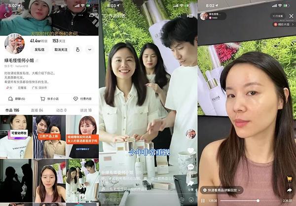 但相比于抖音开播的相对常态化,快手上的欣怡更多会通过直播来清仓卖货。在过去90日里,欣怡仅在快手开播了1场,预估销售额7万,其他的时间,她只是在快手保持视频更新,通过视频种草方式引流用户到淘内下单。像欣怡这样的游走在淘、抖、快的网红型播主还包括@绿毛怪怪何小姐,@胡楚靓等。