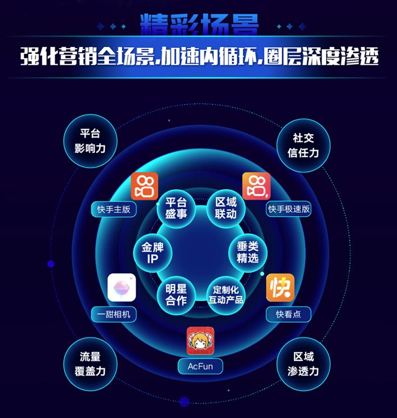 快手磁力引擎招商项目分为平台盛事、金牌ip、垂类精选、明星合作、区域联动、定制化互动产品6大类别,不断拓展资源边界,新增AcFun、一甜相机、快看点等蓝海资源,加速内循环,实现跨圈层矩阵式营销的同时,也搭建起品牌营销富生态。