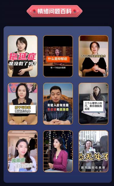 此外,快手还联合壹心理、昭德心理等专业心理机构、高校教师,产出大量心理健康科普专业短视频、直播内容,吸引到更多用户关注。