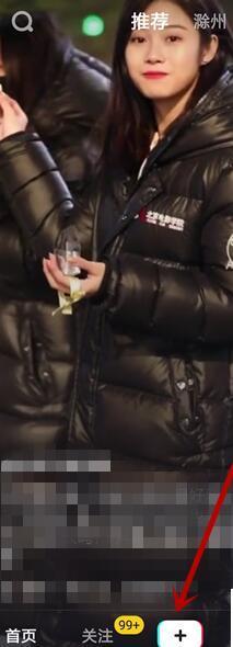1. 第一步,在手机上打开抖音软件,进入如图所示的主页,然后点击界面底部的“+”图标。