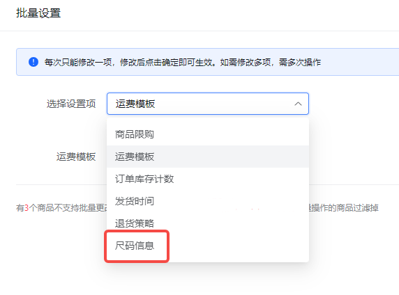 注:非服饰鞋类商品不支持尺码模板关联配置。