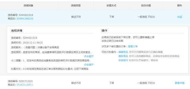 3、由于受过违规的店铺被系统监察的几率是很大,所以有过相关处罚的店铺一定要自查宝贝,避免再次其他的宝贝违规下架或者删除。