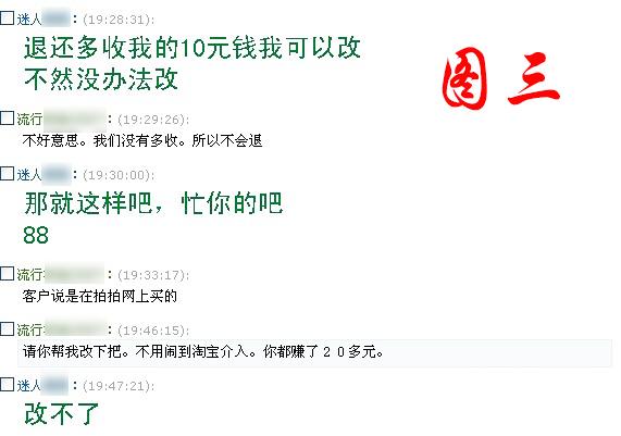 1、买家于2月26下午4点多5点左右在我店买了一套音箱,买家当时和我讲价60元包邮,我不同意,最终以65成交。并于5点左右被快递公司业务员收走。在整个过程中,完全是买家自愿购买。后来于5点半左右,买家以无理的方式要求我退还10元给他或者去快递那要回货物。试问快递发出后怎么要回来,难道要做飞机去北京拿吗?