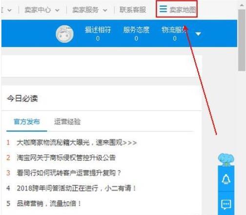 3.登录卖家中心后,点击右上角的“卖家地图”选项。