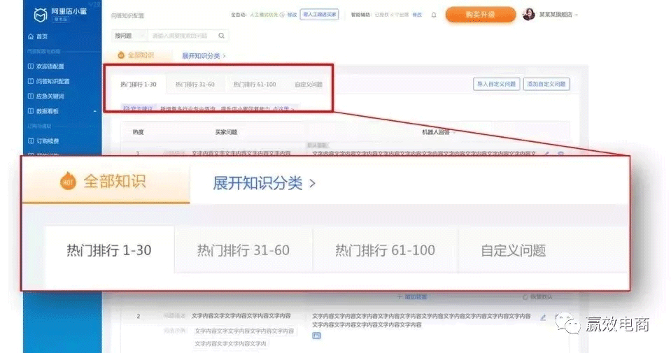 店小蜜2.0版本,知识库进行了问题热门度的Top100排序。