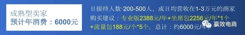 三、 成熟型卖家:日接待人数200-500人、或日均营收在1-3万元的商家。