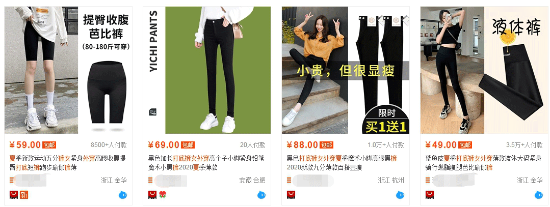 如上:同样是打底裤,客单价从49到88元的都有,到秋冬还有100多元的,所以不同的价格段都有自己对应的客户群体。我们只要抓住自己的目标客户就可以。