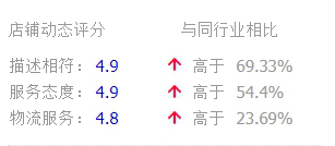 但是消费者对于三项数据的评分是有感性成分在内的,比如:快递服务不好,可能会导致消费者对除了“物流服务”评分低以外,也会对其他两项评分低。