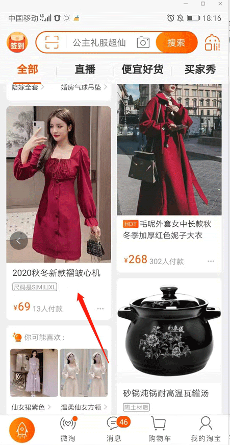 概念:是一个由简版商品详情卡片构成的无尽商品流,连接着手淘首页猜你喜欢场景到详情页的路径,通过给用户提供沉浸式的商品浏览体验,让用户顺畅的持续下滑浏览商品的同时,还可以在商品流中直接成交购买,加入购物车,收藏等缩短购物链路。简单来说,以前的猜你喜欢模块点进去都是唯一的一个产品,如今进入是一列相似宝贝集合,并非唯一的。