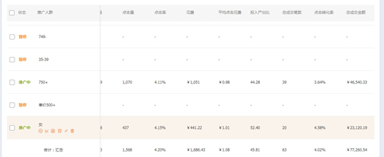 我们需要考虑的点,就是不要添加留着一大堆人群不用优化,我们既然考虑做人群,就是为了做到最精准的人群投放,及时留下来3个2个或者是1个。只要是数据好,并且稳定,那么就是我们店铺的精准人群,持续配合关键词投放。
