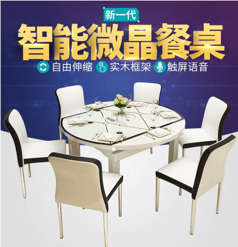 F(Features)定义:产品的特征、特性等最基本功能,就是买家需求。这个产品是否是买家感兴趣的,是否是买家需要的,为了让买家更一目了然的了解产品进而引发买家兴趣,一般建议在首屏放置产品整体海报。分类分为内在属性,外在属性。以下图为例跟大家说明一下,外在属性就是体现出智能餐桌,自由伸缩,触屏语音等这些功能,外在属性就是实木框架这些产品属性,要在产品详情中进行体现。