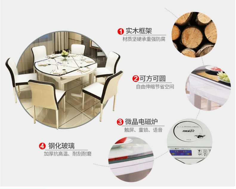 A( Advantages )定义:代表由这个特征所产生的优点,即(F)所列的商品特性究竟发挥了什么功能?是要向买家证明购买的理由,买家在购买一个产品时都会需要一个购买理由来激发潜在需求。以下面的截图为例大家可以看到这款桌子的优点是实木框架,可方可圆,微晶电磁炉,钢化玻璃等等,可以在详情里突出咱么产品的优点进行详细的描述。