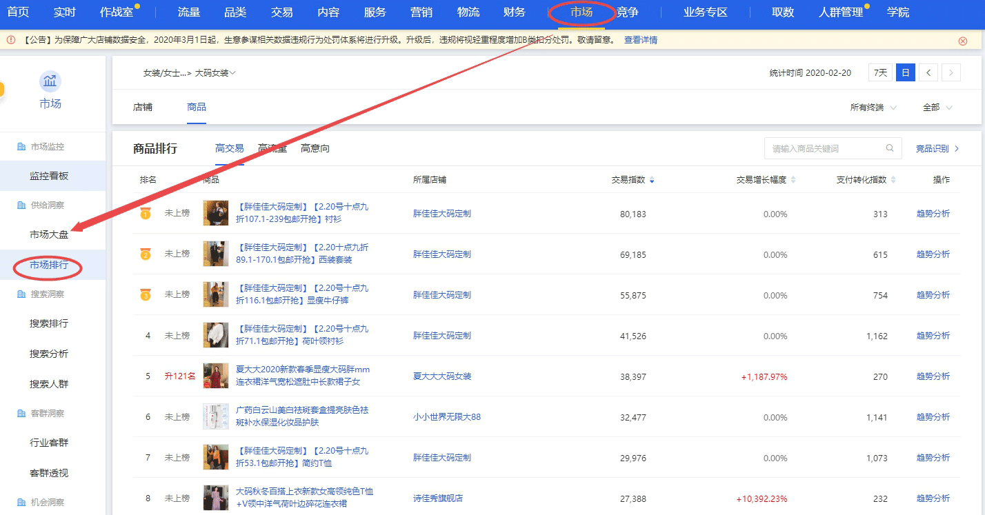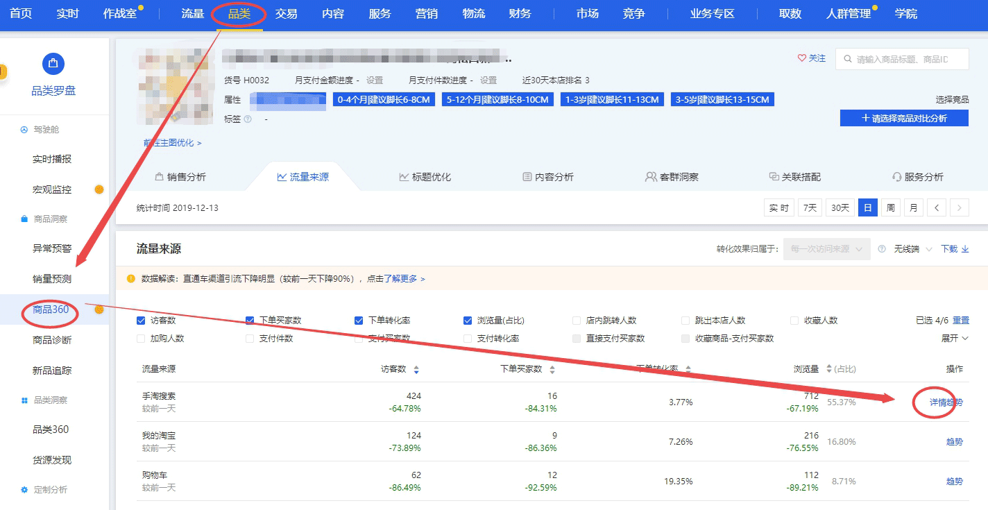 也可以看到类目卖的比较好的商品,以及它的相关数据,比如说流量、转化率;