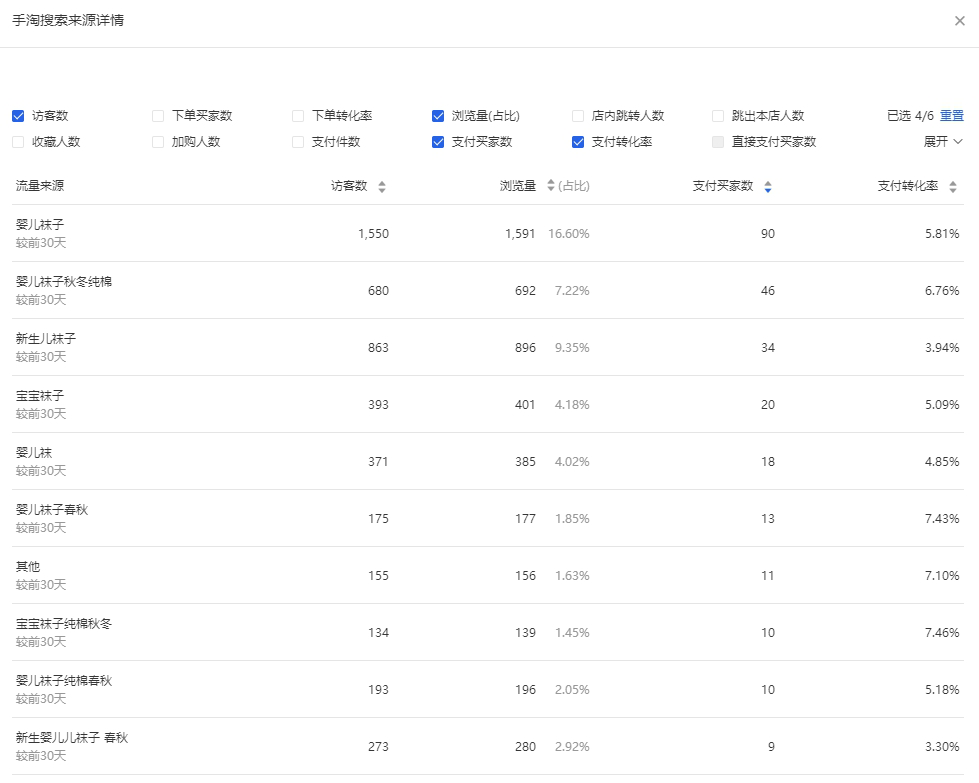 还可以看到10个竞品的详细数据,例如说他的流量构成、成交的关键词。