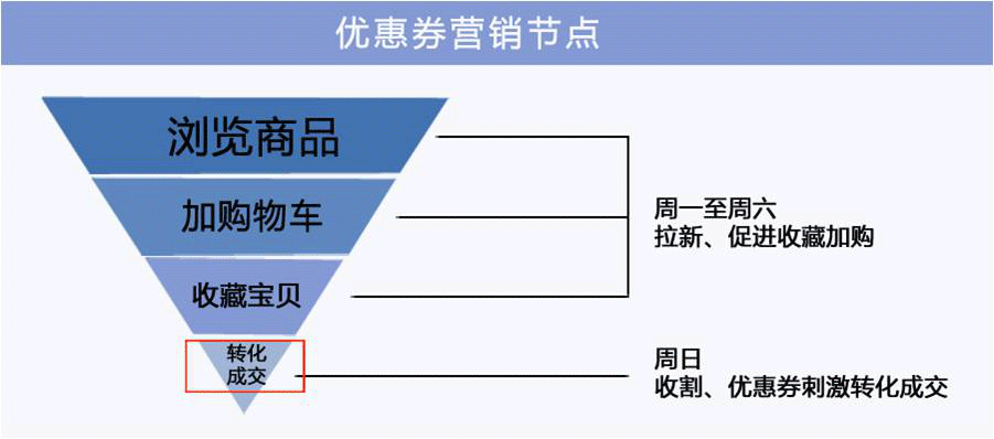 依上图确定了行业流量高峰日及客户行为特征后,我们选择在周日通过专属优惠券来刺激客户进店成交