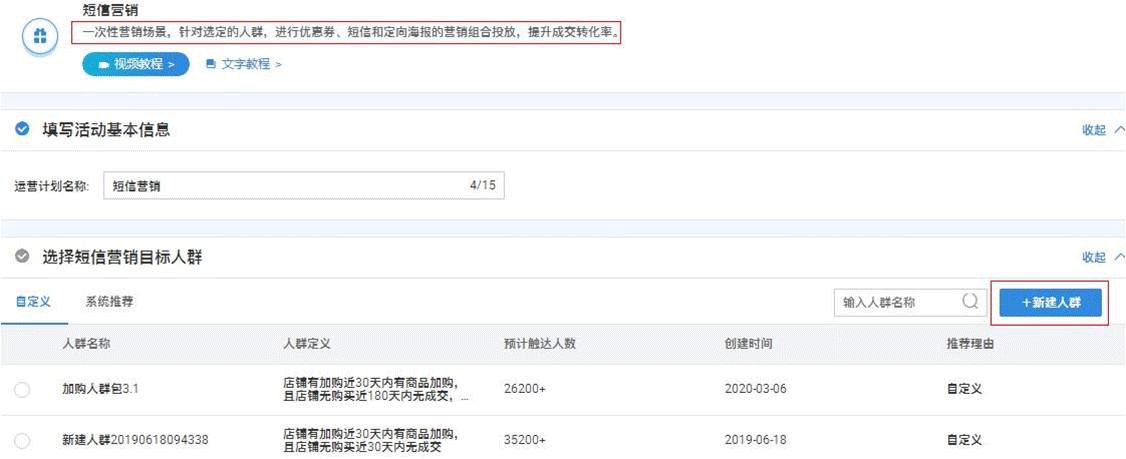 点击下图右侧“新建人群”可以自定义投放的人群包 :