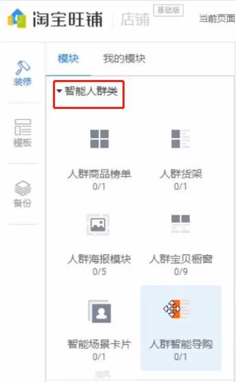 ③拖动“智能人群导购”模块进入装修页面