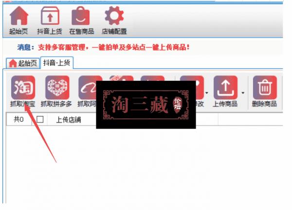 根据自己的需求,选择合适的抓取渠道,目前支持抓取淘宝、拼多多、阿里巴巴、抖音、搜款网、京东、17网的商品一键上传到抖音。