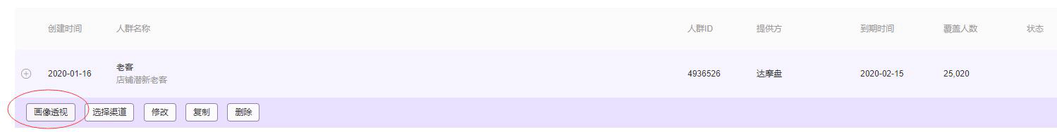 建立标签,在我的人群找到这个标签,然后下面有一个“画像透视”按钮,我们分析一个这个人群。我们点击以后需要等几分钟。