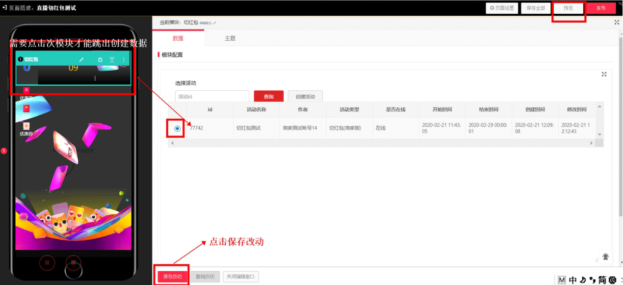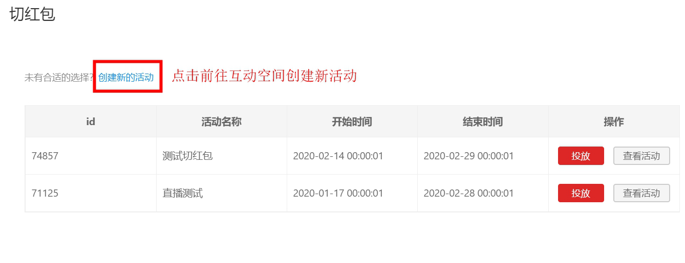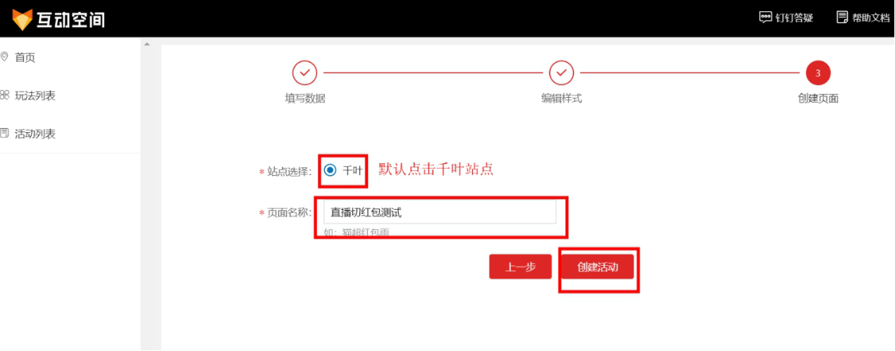 2.进入互动空间创建切红包玩法