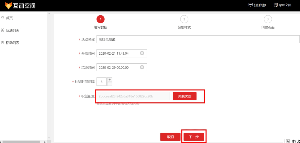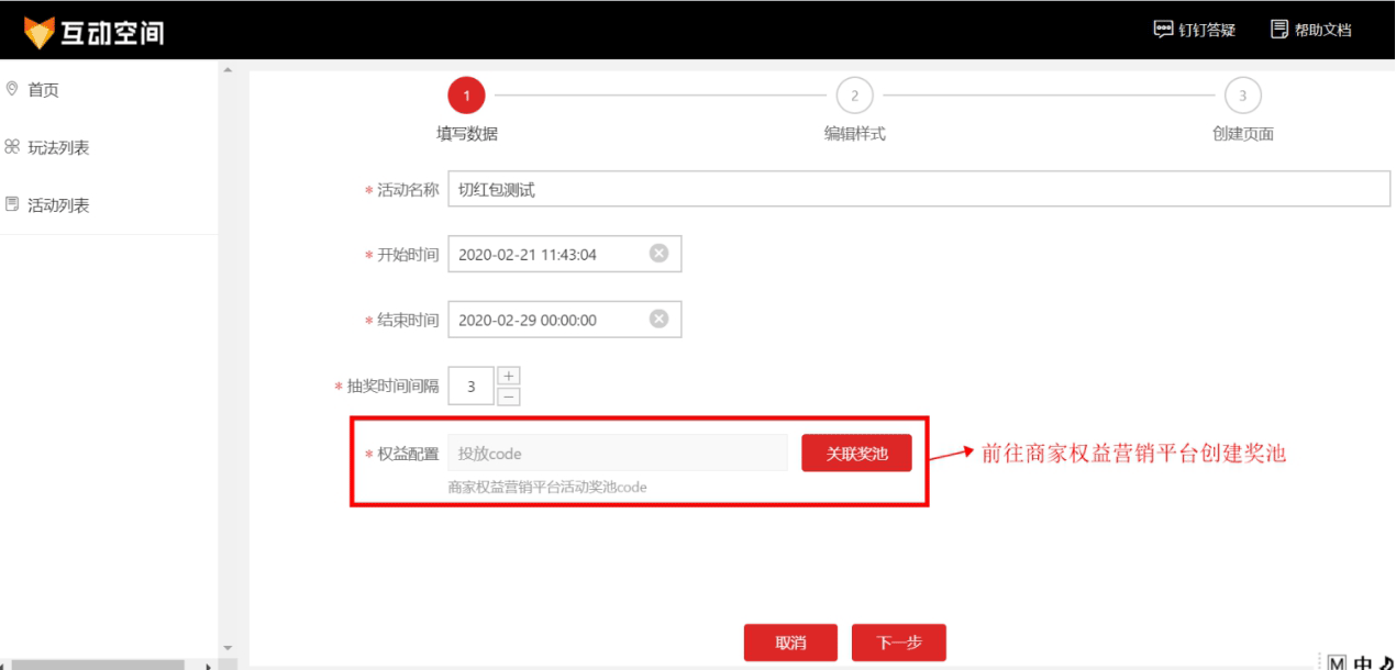 2.2 互动空间关联创建奖池