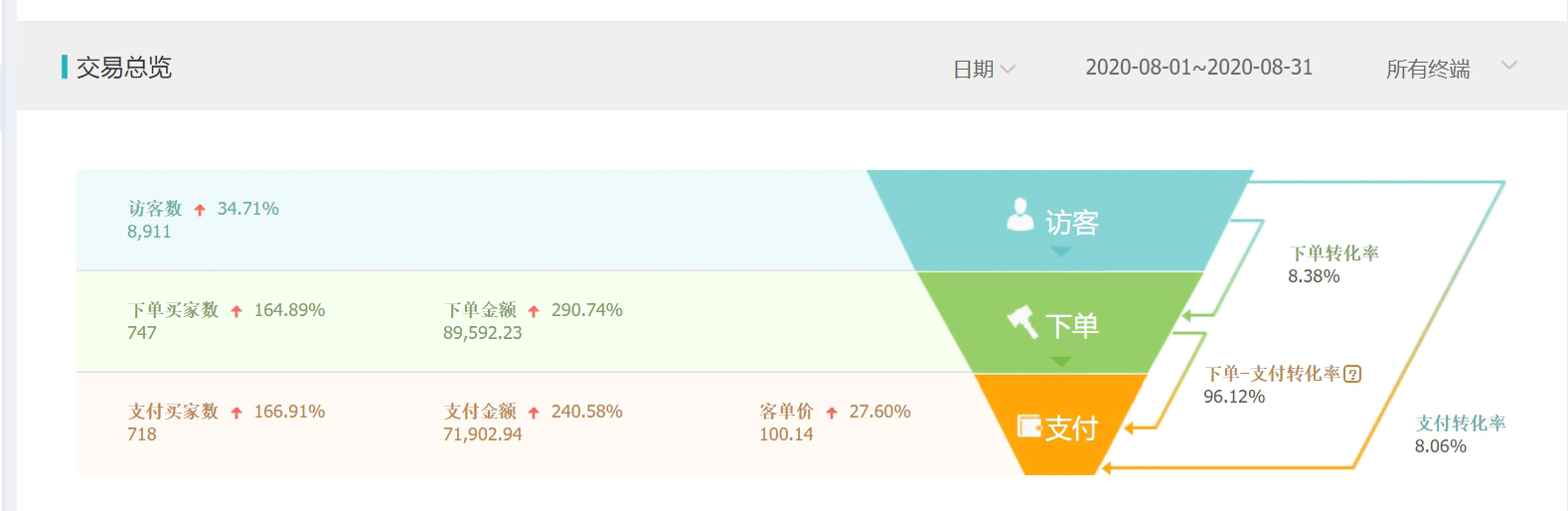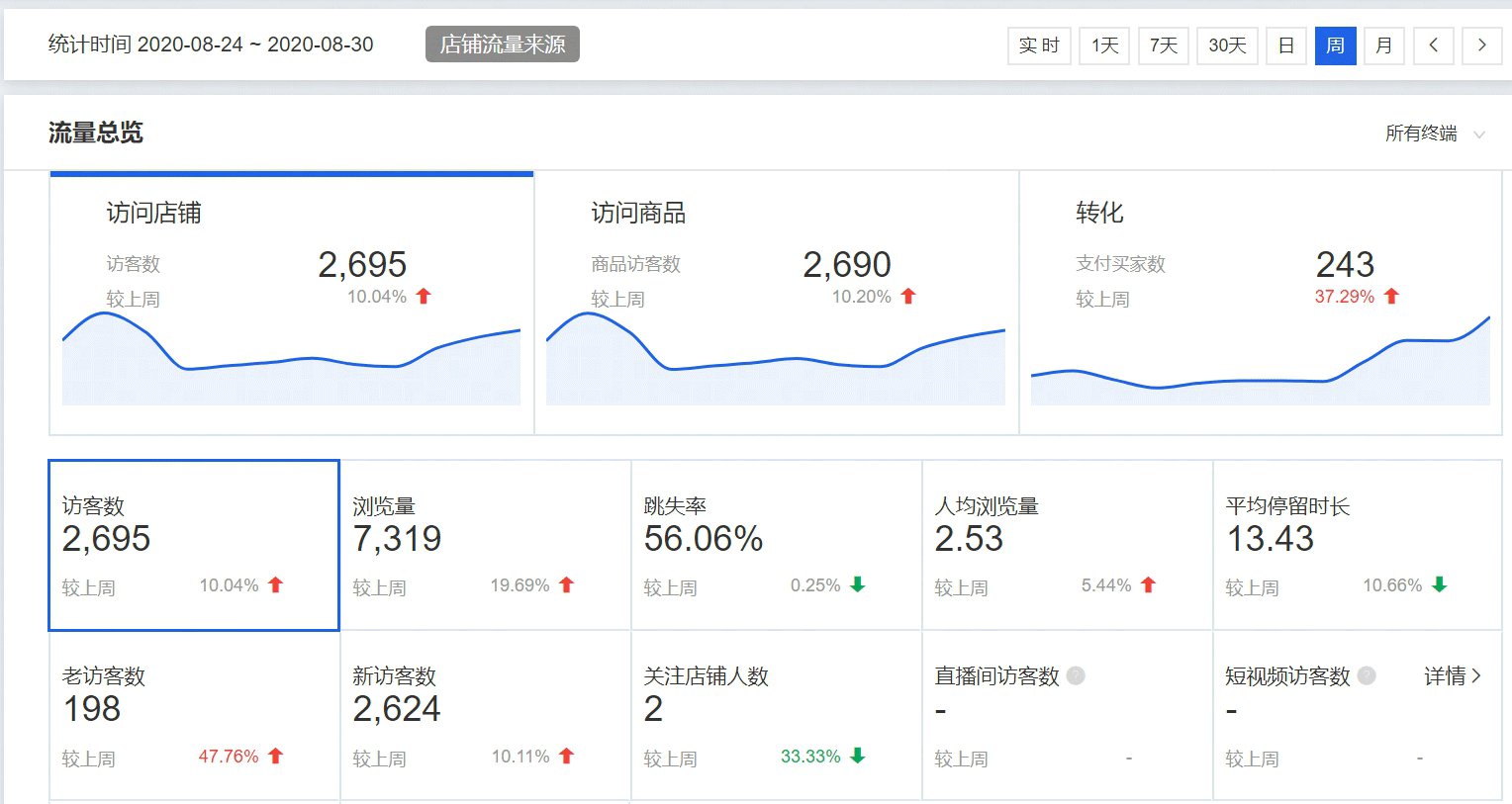 这就是做出的店铺各方面流量上升情况