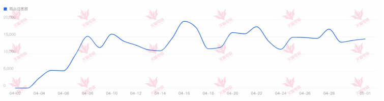 单品访客数据:访客初期快速增长势头,后期逐步稳定,目前日访客1.4w+,月访客34w+。