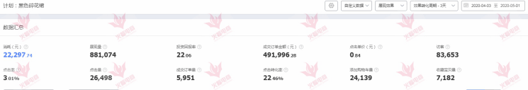 智钻数据:总体花费2.2w+,投产22.06,整体的点击成本获取访客的能力要比直通车高。