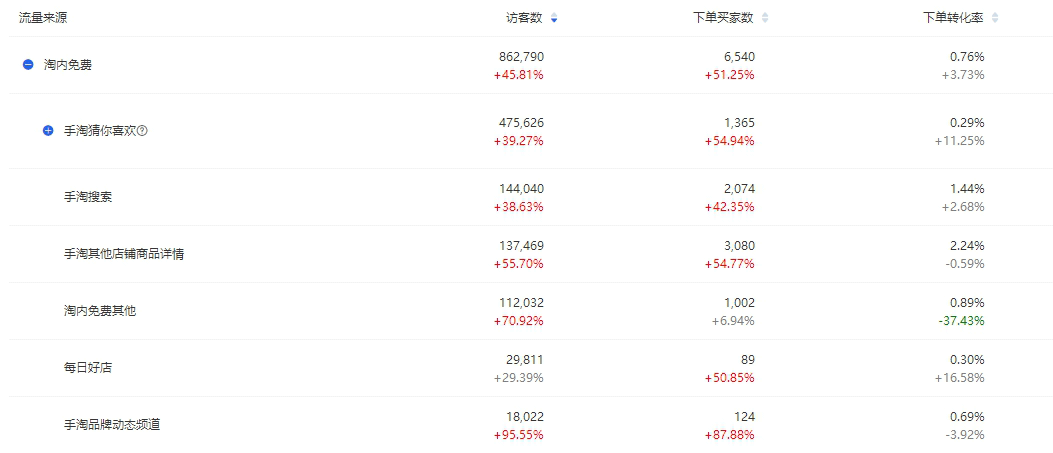 通过此次打爆运作,店铺各免费流量渠道流量皆呈上升趋势。