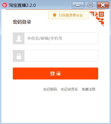 输入淘宝账号密码,登陆电脑端官方推流工具成功