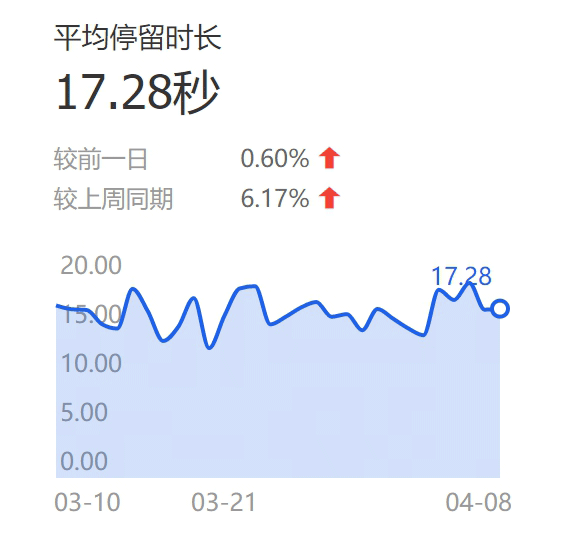 平均停留时间多长才算合理?有行业功能性强的产品能做到50秒,有的行业产品简单只有几秒的平均停留时间,这都很正常,我们先不用纠结有多长,而是关注这个时间是不是在增长的,如果波动较大且低于同类产品的历史数据,那么这样的详情是需要优化。