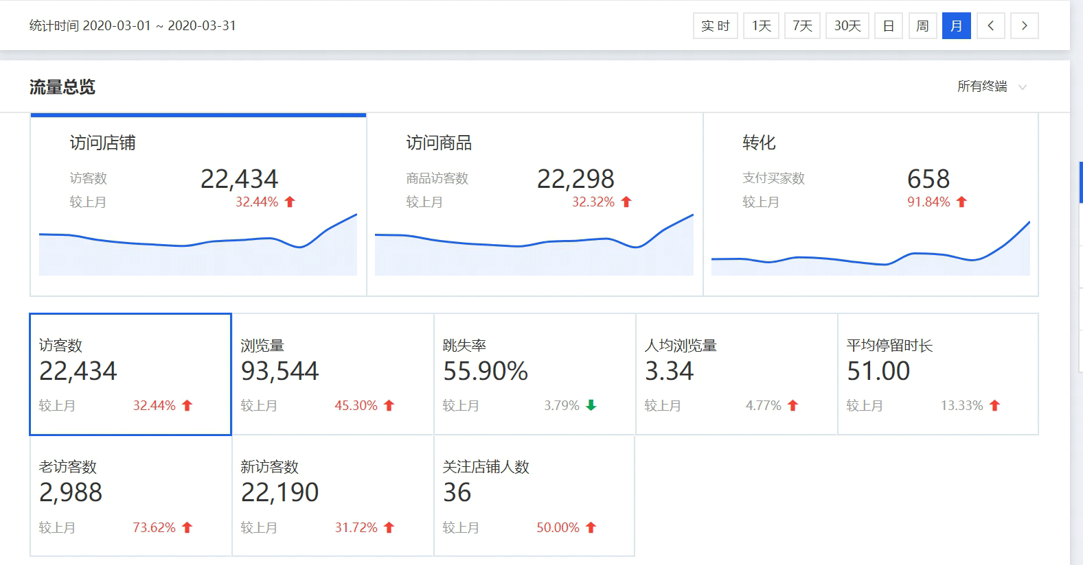 可以通过调整地域,关键词,流量入口控制,PC与无线占比,创意标题和图片等方式提升点击率,利用15天时间去进行删词及人群,最后留下精准词进行高卡位。都精准后可以增加日限,来带动你店铺的整体流量和转化。大约半个月到一个月删选一次地域,只留好的地域不好的全部不留,进而达到一个高精准的计划,时刻观察计划中每个关键词的市场分析,以展现-点击-单价-转化-点击率来进行分析,人群添加潜力的群体进行投放。这是直通车计划已经带动店铺的整体提升数据。