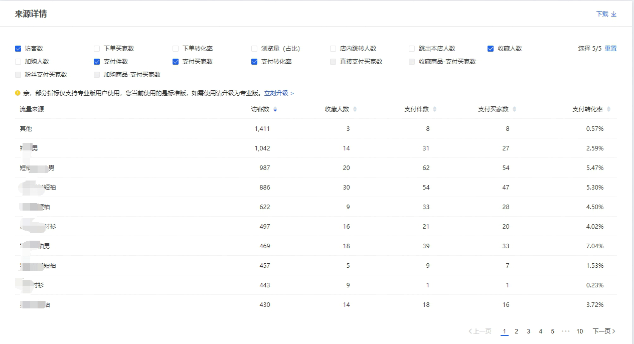 了分析更加便捷,可以将当前页面的数据下载成EXCEL并删除不重要的数据指标