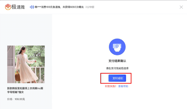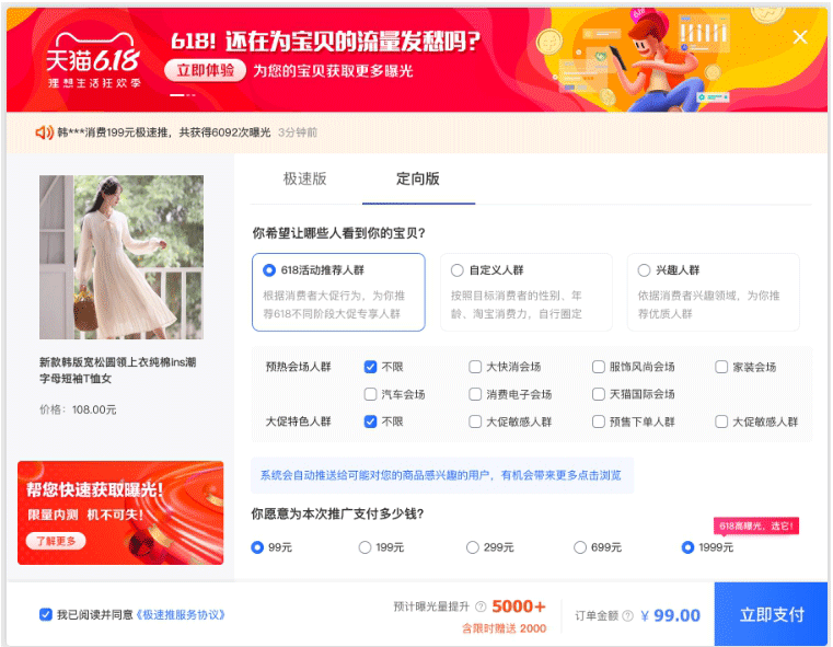 a:选择目标人群、愿意支付的订单金额,点击“立即支付”,进入支付流程