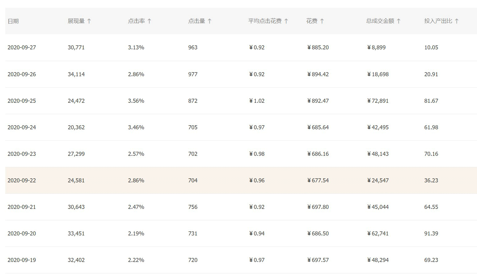 实际推广后,这批拓展词的整体的推广效果比它原有的精准计划推广效果都要更好一些。大家可以看到这个数据投产直接是超过了50多,而且很稳定的,每天都有投产。以下是每日投放数据列表: