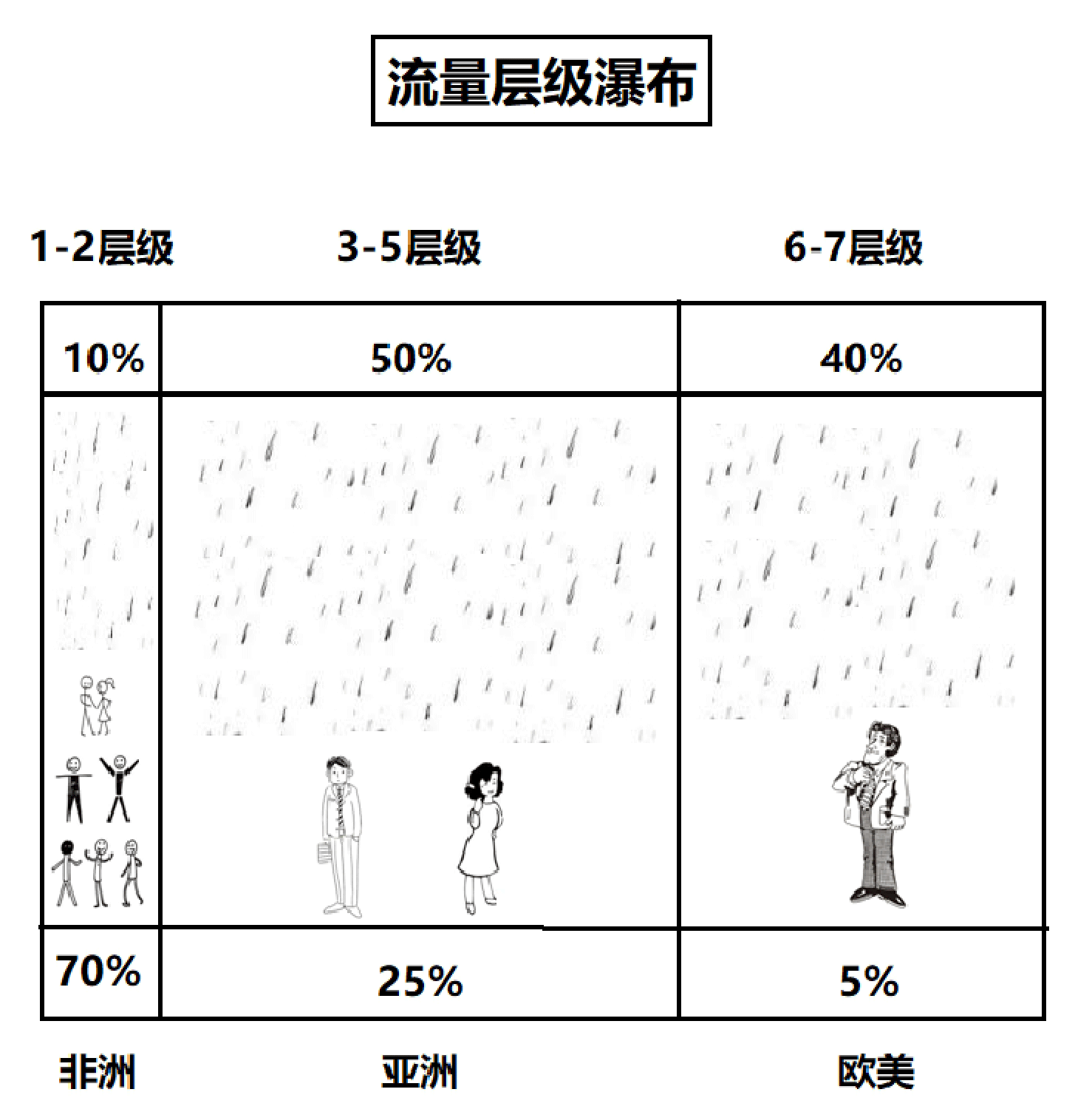 每个层级的流量体和分配占比都不同,