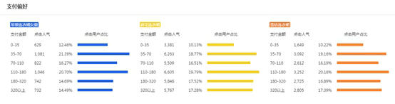 做店一定要做有一定利润还要有量的产品,价格太低到最后很可能就是做个搬运工,通过这个数据可以看出110-180的占比不错,有量也有利润,也要和自己店铺价格段也相符。