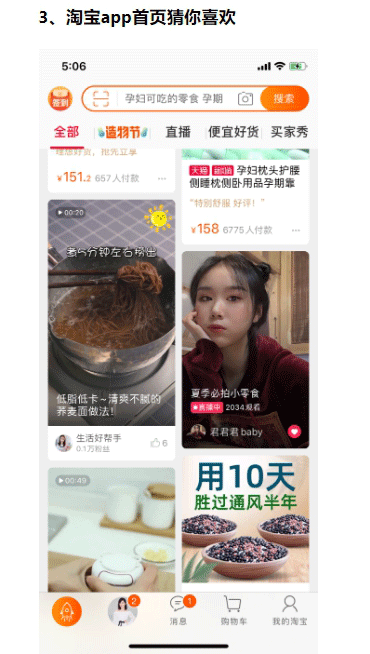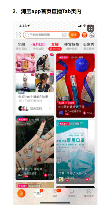 4:淘宝APP购中猜你喜欢,直播广场,微淘都是其资源位