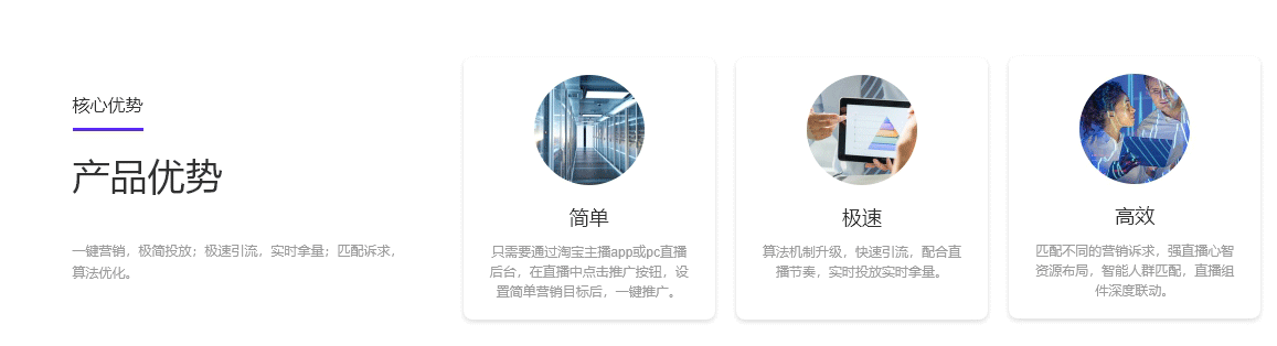 高效:匹配不同的营销诉求,强直播心智资源布局,智能人群匹配,优化效果。